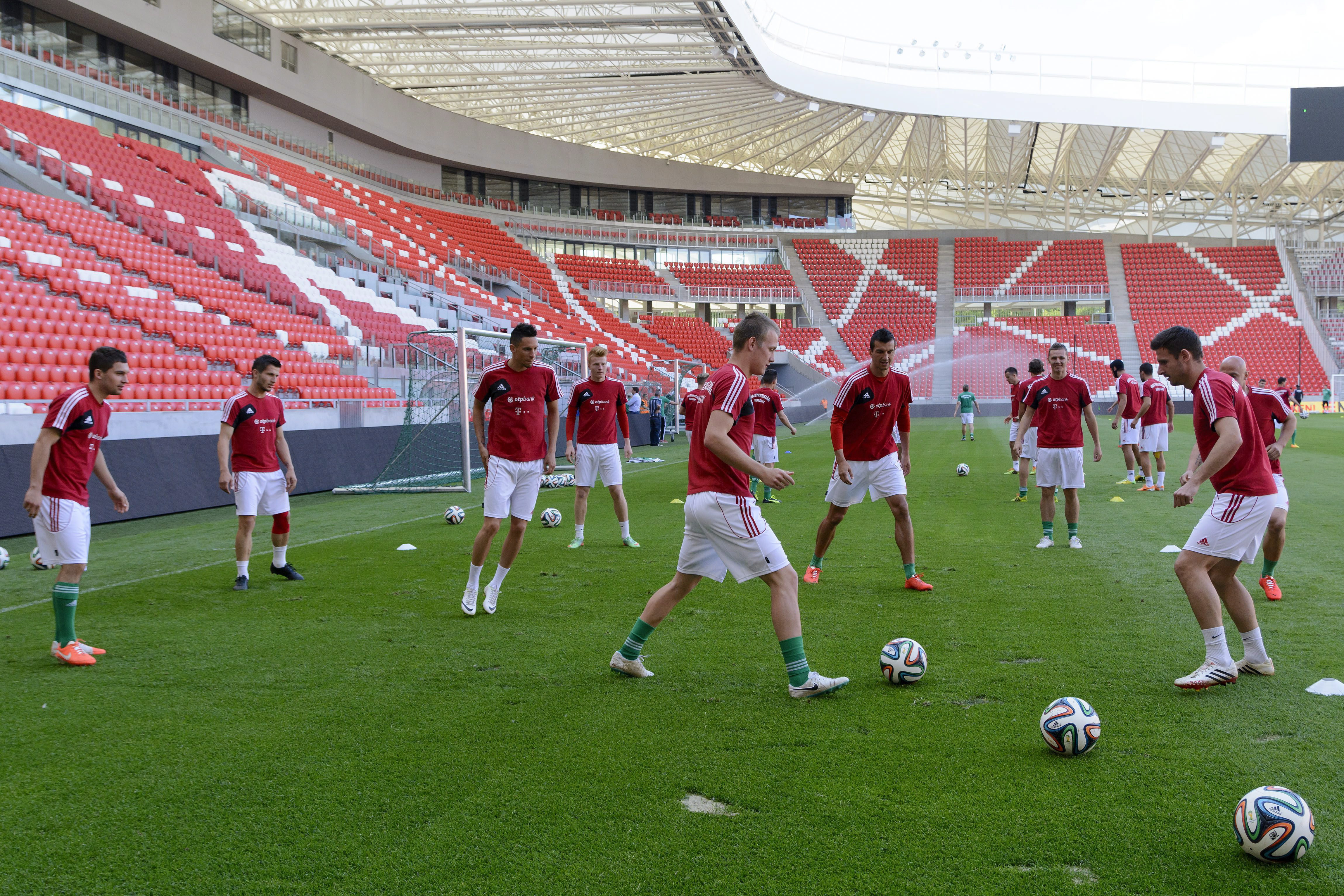 Debrecen, 2014. május 21. A magyar labdarúgó-válogatott edzést tart a debreceni Nagyerdei Stadionban 2014. május 21-én. A magyar válogatott május 22-én barátságos mérkőzésen lép pályára a dánok ellen. MTI Fotó: Czeglédi Zsolt