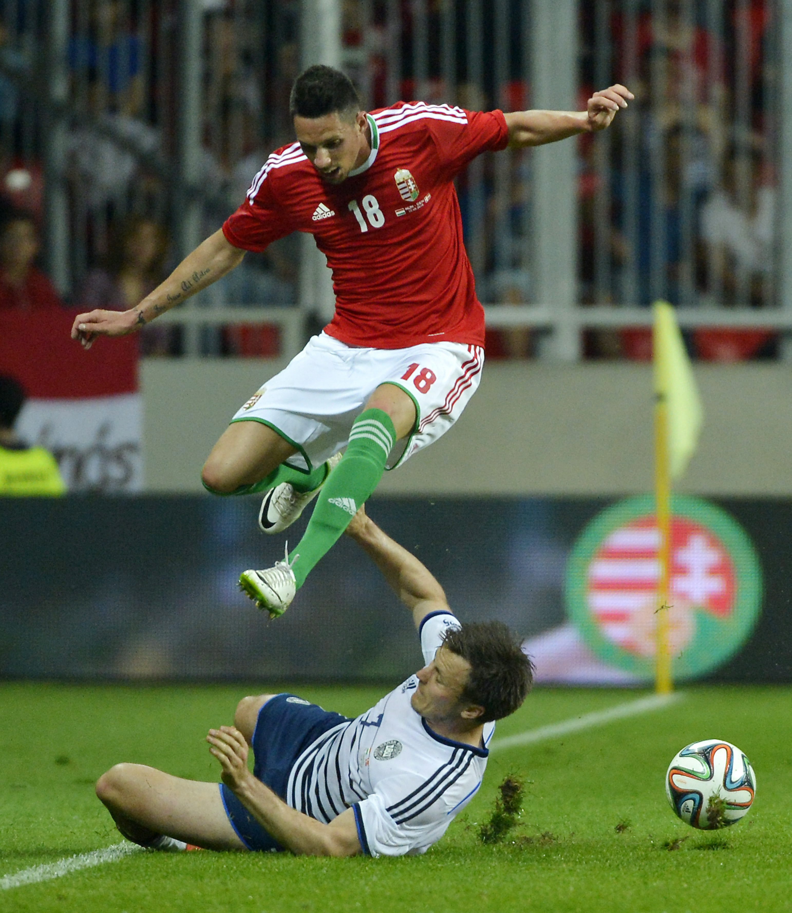 Debrecen, 2014. május 22., csütörtök (MTI) – A magyar labdarúgó-válogatott 2-2-es döntetlent játszott Dániával a debreceni Nagyerdei Stadionban csütörtökön rendezett barátságos mérkőzésen.