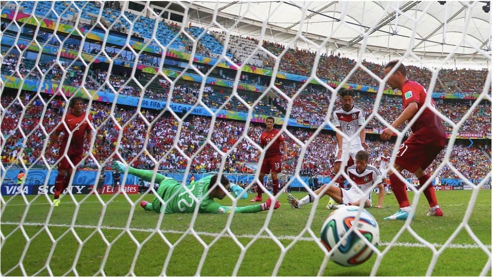 Salvador, 2014. június 16., hétfő (MTI) – Németország válogatottja a vártnál jóval fölényesebben, 4-0-ra nyert a portugál csapat ellen a brazíliai labdarúgó-világbajnokság G csoportjának hétfői első mérkőzésén.