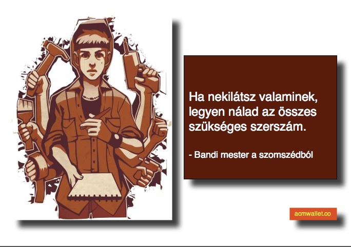 De Te más vagy! Te a saját bizniszeden dolgozol, és nem engedheted meg magadnak, hogy órákig vagy napokig elszöszölj valamin, ami amúgy menne pikk-pakk is. Ezért fogadd meg Bandi mester tanácsát, és előre tervezd meg, mit és hogyan akarsz csinálni. Ha van terved, akkor azt is tudod, hogy mire lesz szükséged ahhoz, hogy megvalósíthasd. S mindezeket szerezd be, még mielőtt nekiállnál.