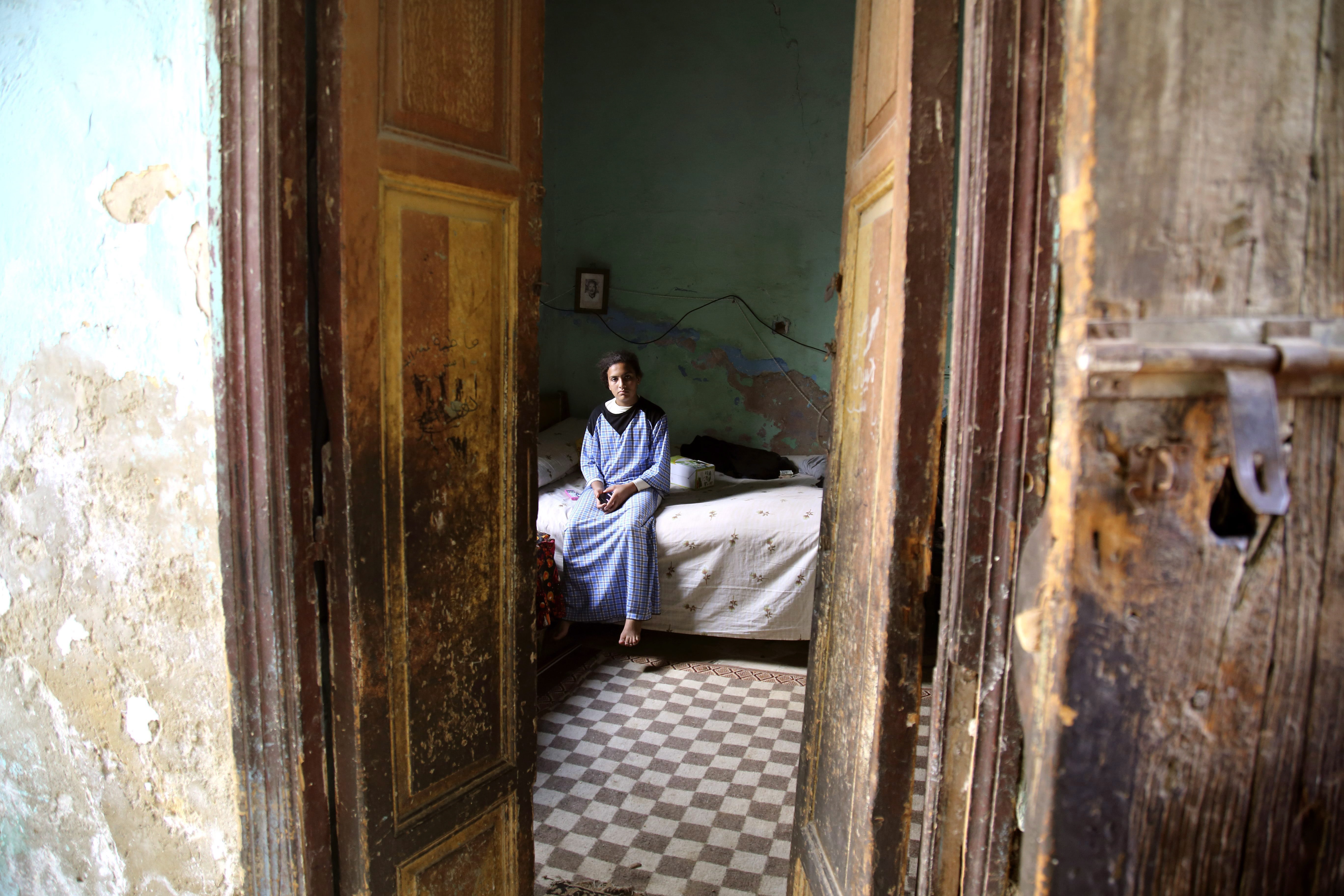 Fiatal lány egy kriptában kialakított hálószobában a Kairó keleti felén több mint hat kilométer hosszan elnyúló el-Aráfa temetõben, az úgynevezett Holtak Városában 2014. október 8-án. Aki Egyiptomban a nyomornegyedekben sem talál helyet, gyakran egy temetõben húzza meg magát: hivatalos adatok szerint az észak-afrikai országban mintegy másfélmillió ember él a holtak között.