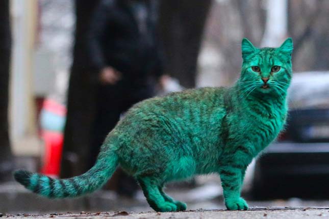Egy smaragdzöld színű macska tartja izgalomban napok óta a bulgáriai Várna lakosságát. Az internetezők közül sokan fotómanipulációra gyanakodtak, mások pedig azt gondolták, hogy valaki befestette a szabadon kóborló, szelíd állatot. Még egy Facebook-csoport is alakult, hogy megtalálják kik a felelősek a macska különös megjelenéséért. Ám most kiderült, hogy valójában miért lett zöld a macska szőre. Az állat egy olyan raktárban alszik rendszeresen, ahol szintetikus festékeket tárolnak. A bundáját, amely napról napra zöldebb, ez festette meg.
