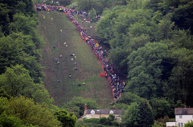 A Sajtgurító Verseny a 15. század óta rendszeresen megrendezett esemény az angliai Glouchestershiremegyében, a Cooper’s Hill lankáin. A lejtőn útnak indítanak egy kerek sajtot és a résztvevők utána iramodnak, hogy elkapják, mielőtt a domb aljára ér. A sajtgurító versenyen összesen négy futamot rendeznek, egyenként 15 indulóval. A futamok győztesei megnyerik a sajtot, a második helyezettek 10 fontot, a harmadikok 5 fontot kapnak. Vagyis az nem állítható, hogy a pénznyeremény motiválná a lelkes versenyzőket. Mivel a meredek hegyoldalon a lehető leggyorsabban száguldanak le a sajtgurítók, csak kevesen ússzák meg kisebb-nagyobb sérülések nélkül. Az esemény első írásos említése az 1850-es évekből való, amiben az egyik 1700-as évek végi versenyről történik említés. A hatóságok már többször betiltották az őrült versenyt,mivel nagyon sokan megsérülnek, de ez nem riasztja vissza a résztvevőket.