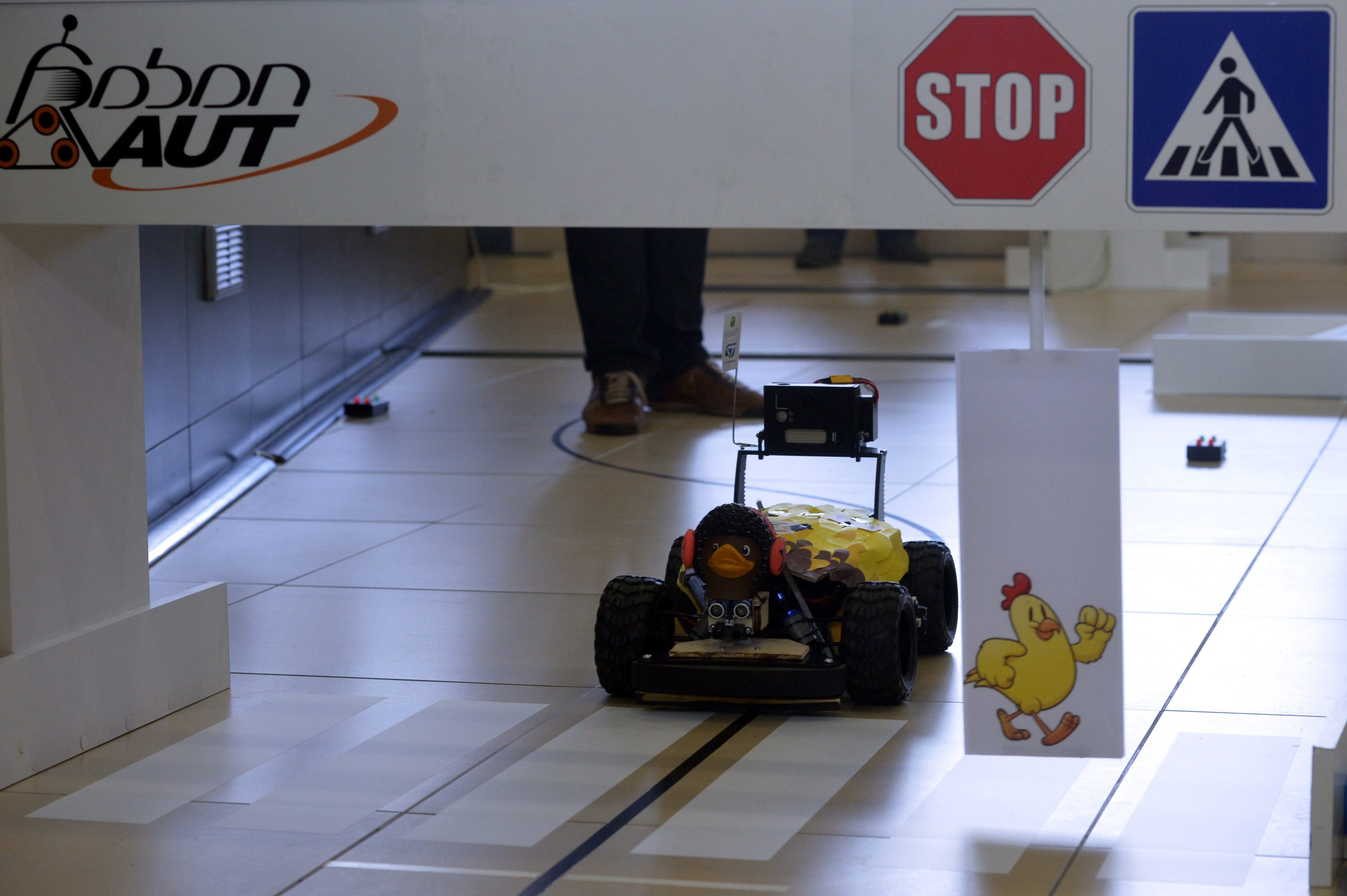 Budapest, 2015. január 10. A Routh Kiskacsa csapat robotautója az ügyességi pályán a RobonAUT 2015 versenyen, amelyet a Budapesti Mûszaki és Gazdaságtudományi Egyetem Villamosmérnöki és Informatikai Kara rendezett Budapesten 2015. január 10-én. MTI Fotó: Kovács Attila