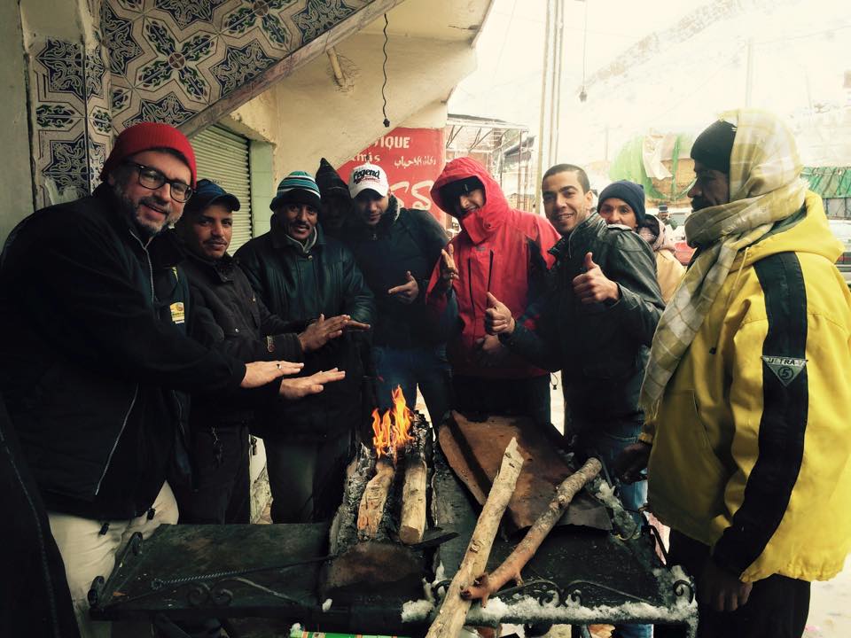 Mai hírek, hogy az Atlaszban a hóesés miatt 1500 méter magasan lezárták az utat. Vannak, akik inkább visszafordultak Marrakeshbe. Akik nem, azok pedig szépen várnak a sorukra.