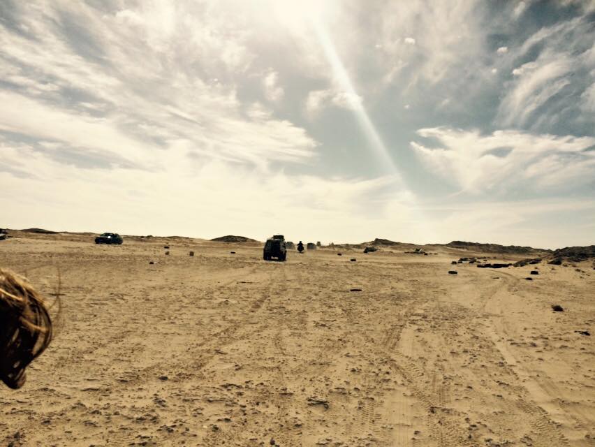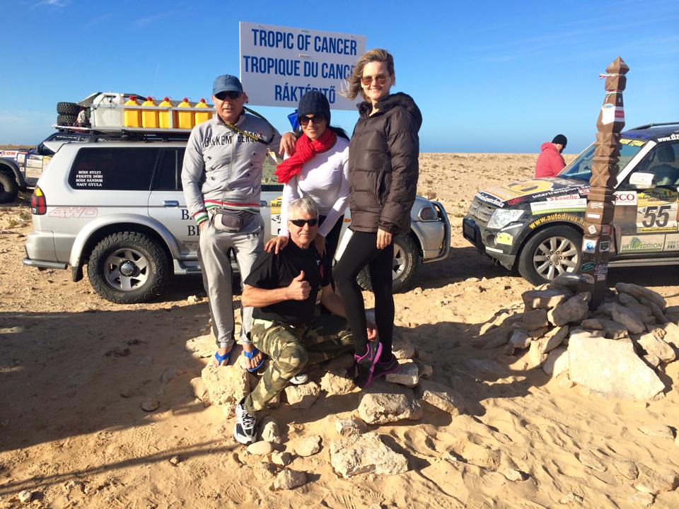 A Mitsubishi Pajerok pedig öt autóval egy nagy (túra) csapatot alkotva szelik a sivatagot. Közöttük van Bódi Sylvi és csapata is, akik a mai napon átszelték a Ráktérítőt.