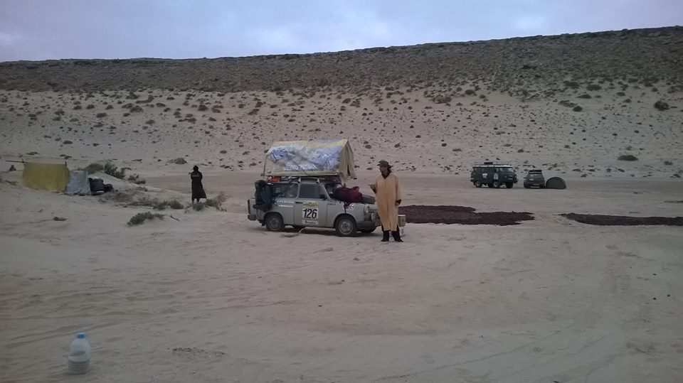 A Trabant Kombival küzdő Millenium Flakon csapat is elhagyta már Dakhlát, és közelednek a határhoz. Nem semmi teljesítmény egy Trabanttól!