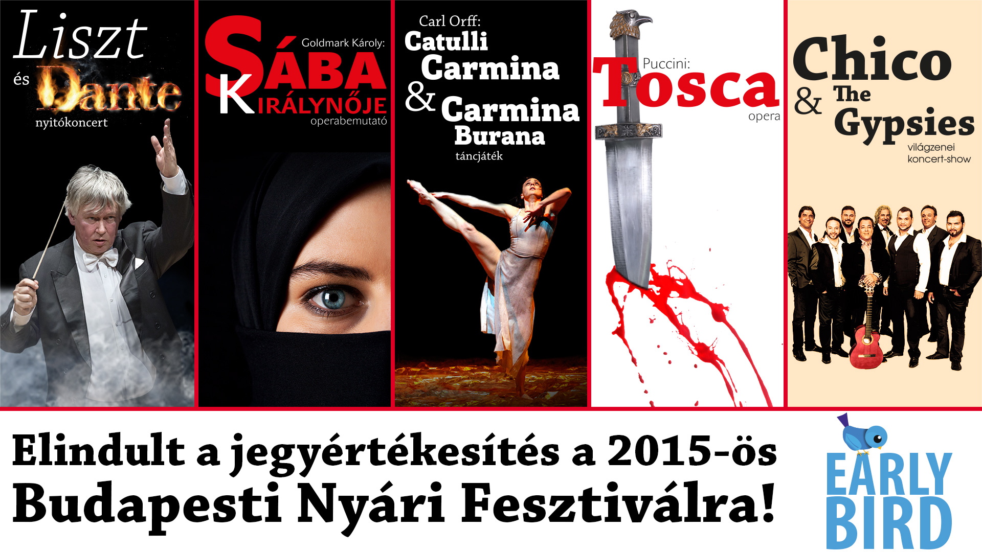Budapest, 2015. február 9., hétfő (OTS) – Startol a kampány, óra indul! Ha a legjobb áron szeretne hozzájutni a legjobb helyekhez az ország legszebb nyári színházának előadásaira, érdemes “korán kelnie”. A Budapesti Nyári Fesztivál a világszerte egyre népszerűbb Early Bird kampánnyal négy hónapon át kedveskedik vendégeinek. Februárban 40%-os kedvezménnyel válthatnak jegyet a Margitszigeti Szabadtéri Színpad szuperprodukcióira, az első 400 jegy mellé Színházi hajójegyet is adnak ajándékba.