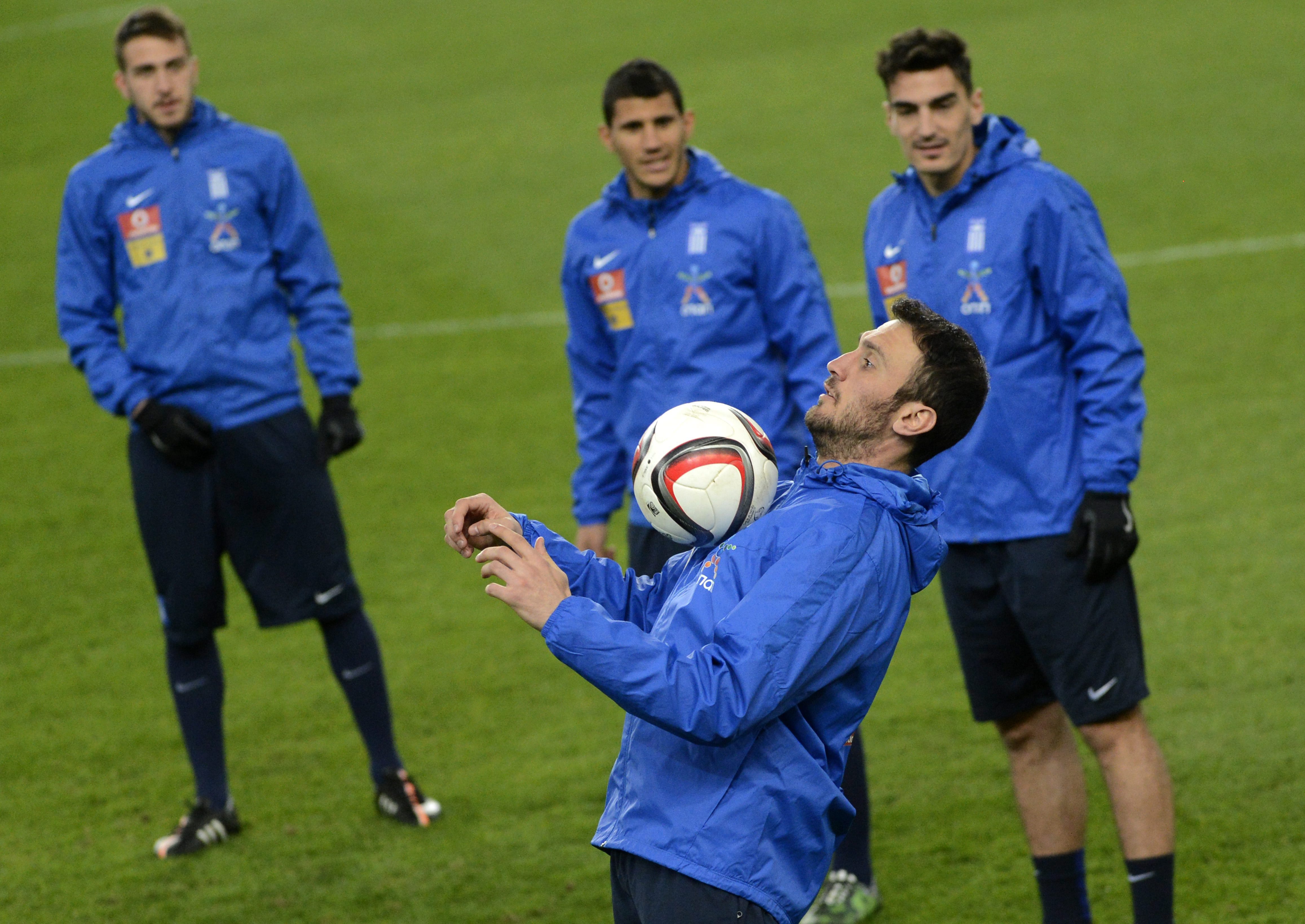 Vaszilisz Toroszidisz a március 29-i, Magyarország elleni Európa-bajnoki selejtezõmérkõzésre készülõ görög labdarúgó-válogatott edzésén a Groupama Arénában 2015. március 28-án.