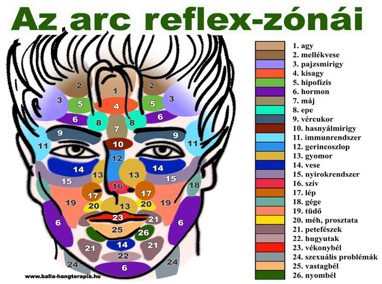 Egyre többen hisznek és tapasztalják, hogy ami lelkileg megvisel nyomot hagy az arcunkon így reagál egyrészt a testünk. Nincs ez fordítva sem. Az arcunk különböző pontjai megfeleltethetőek a testünk lenyomatának és egy reflex-zónás térképen könnyen eligazodva, választ kaphatunk egy-egy betegségünkre.