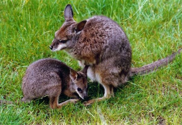 Szeged, 2015. május 14., csütörtök (MTI) – Derby-kenguru (Macropus eugenii) született a Szegedi Vadasparkban, az anyja erszényéből ki-kikandikáló jövevényt már a szerencsésebb látogatók is megfigyelhetik – tájékoztatta Veprik Róbert igazgató csütörtökön az MTI-t.
