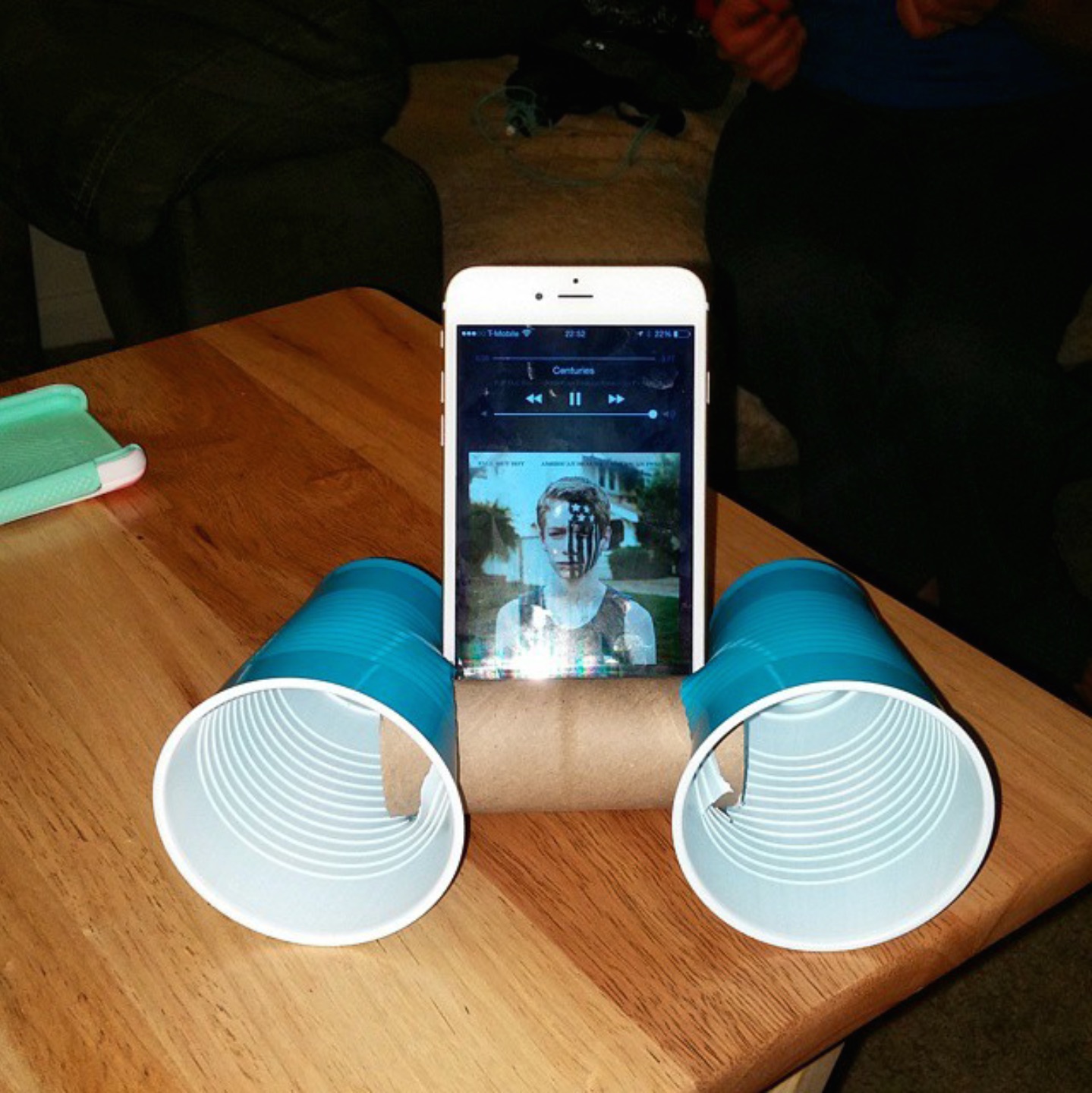 2. Zenét hallgatnál a mobilodon, de nem elég hangos az a ketyere? Természetesen a legegyszerűbb megoldás (csak pénzbe kerül), ha veszel egy bluetooth-os kihangosítót, vagy akár egy rádugósat, ami lejátszás közben tölti is a telót. De ha te inkább saját magadat valósítanád meg ezen a téren is, akkor vegyél egy WC-papír gurigát (tudod, a végét, amikor már lement róla a papír – amúgy elképesztő, hogy ebből mennyi mindent lehet készíteni!), két műanyag vagy papír poharat, a gurigába vágj egy akkora rést, amibe be tudod tolni a telefonodat, a két pohárba pedig akkorát, hogy a gurigát bele tudd nyomni, és már készen is van az igazán egyedi, házi készítésű hangszóró!