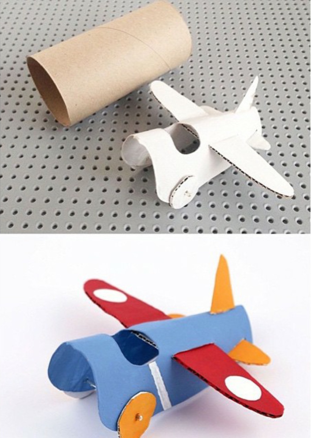 3. Készits a kisfiadnak vagy az unokának egy szuper, spéci repcsit! Mi más kellene hozzá, mint egy letekert WC-papír guriga? Félben kettévágod, az egyik fele lesz a repülő törzse, a másikból kerülnek majd ki a szárnyak, a farok, és a kerék. A kereket tűzd rá tűzőgéppel, vagy ragaszd oda. A többinek készíts egy-egy bevágást a törzsön, és azon húzd keresztül, vagy abba dugd be. Na, menő lettél a gyerek előtt?!