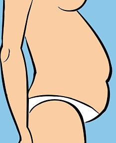 Ez az egyik legegyszerűbben leküzdhető ellenség, mert igazából csak a mozgásszegény életmód és a lisztes-cukros élelmiszerek túlsúlya okozza. James szerint “ha nagyon keveset edzel, sok cukrot és a finomított szénhidráttal teli terméket eszel, mint a keksz, sütemény, fehér kenyér, vagy sokat viszel be keményítőtartalmú szénhidrátokból, mint amilyen a tészta és a rizs, akkor valószínűleg túlsúlyos pocakod van, plusz zsírral a lábakon és a csípőn is”.