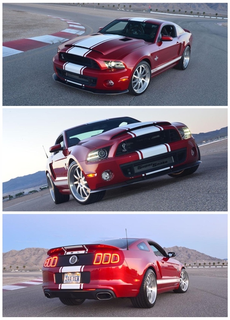 A Ford Mustang Shelby GT500 2013 egy vadonatúj változatával rukkolt ki a Ford. Az új verzió neve: “Super Snake”. A modell hozzátesz a Shelby alap változatához, a teljesítményben, a kupé és kabrió változatban és kétféle konfigurációban: az egyik a Basic 671 LE vagy opcionális lehetőségként a 862 LE. A Super Snake-ben manuális hatfokozatú váltó, speciális felfüggesztés, egy új hűtő, hőcserélő és alumínium tartályok, 20 colos kerekek, nagy teljesítményű gumiabroncsok és az üvegszálas motorháztető borzolja az autóimádók érzékeit. Belül kéttónusú bőr bevonattal is rendelhető ez a gyönyörű szörnyeteg.