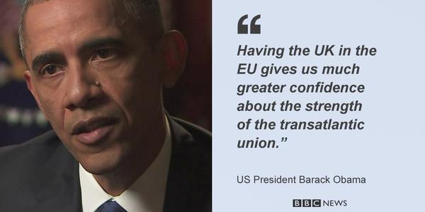 Az amerikai elnök szerint a II. világháború után kiépült európai intézményrendszer is biztonságosabbá tette a világot, hozzájárult a globális jólét növekedéséhez, és az Egyesült Államok ezért azt szeretné, ha az Egyesült Királyság ennek az intézményrendszernek az egyik letéteményeseként őrizhetné meg jelenlegi befolyását a világpolitikában.