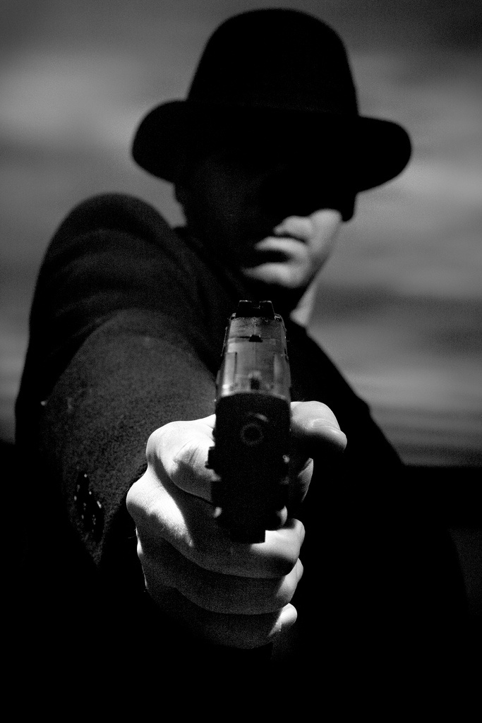 Ezen a kései órán már senki sem járt az utcákon. Ezért lepett meg a homályos alak, aki hirtelen felbukkant előttünk, mintha a semmiből lépne elő. Hajadonfőtt állt az esőben, sötét felöltője nyitva, alatta az inge kilógott a nadrágjából. És a kezében egy pisztolyt tartott.