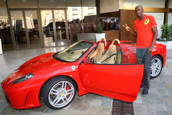 Gyors embernek gyors autó – úgy tűnik, Usain vonzódik a Ferrarihoz. Ahogyan a bankszámlája emelkedik, úgy nő az autói darabszáma is a garázsában, de ezek általában Ferrarik. A kedvenc járműve ezeken belül is a Ferrari F30 Spider.