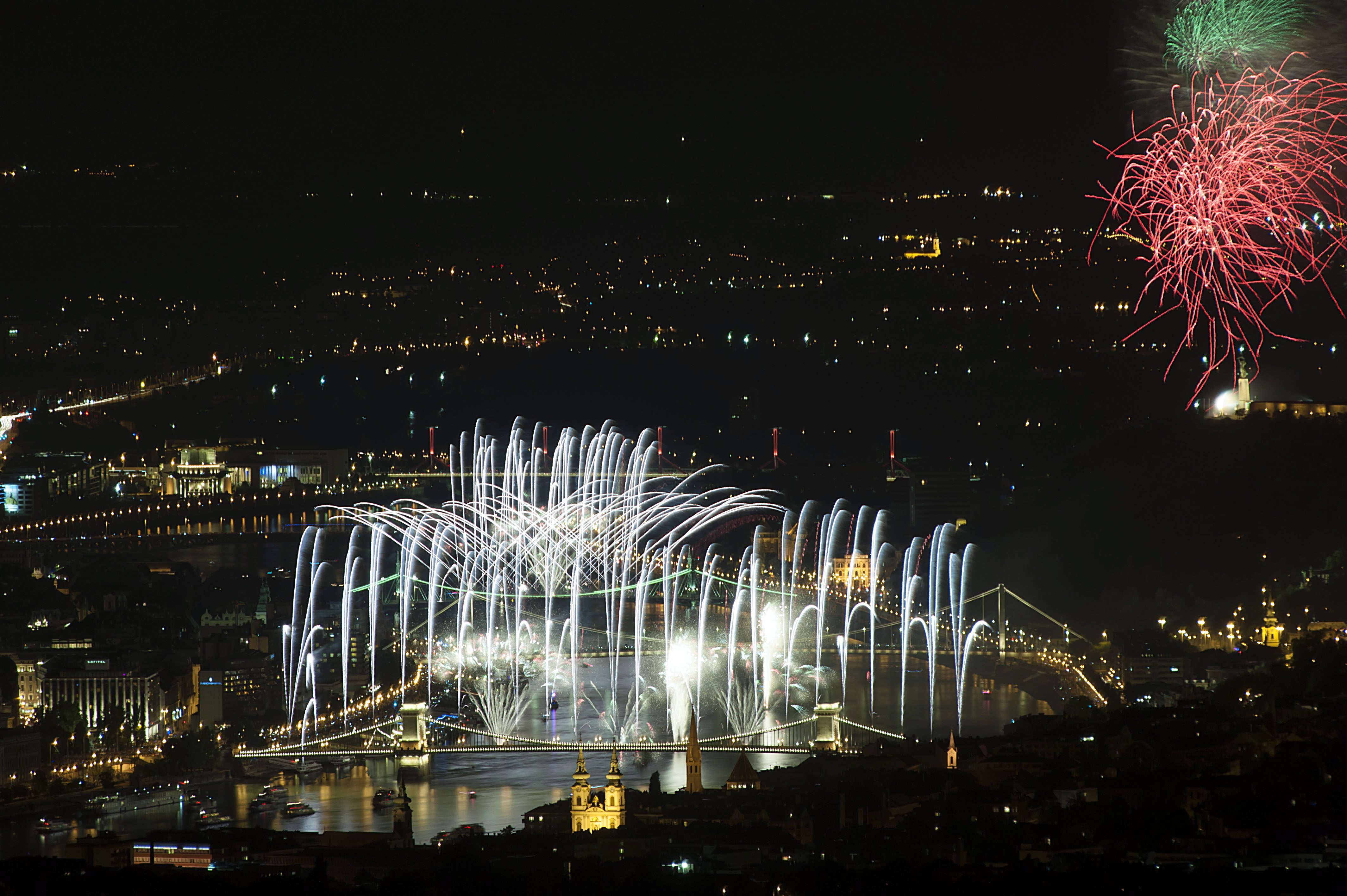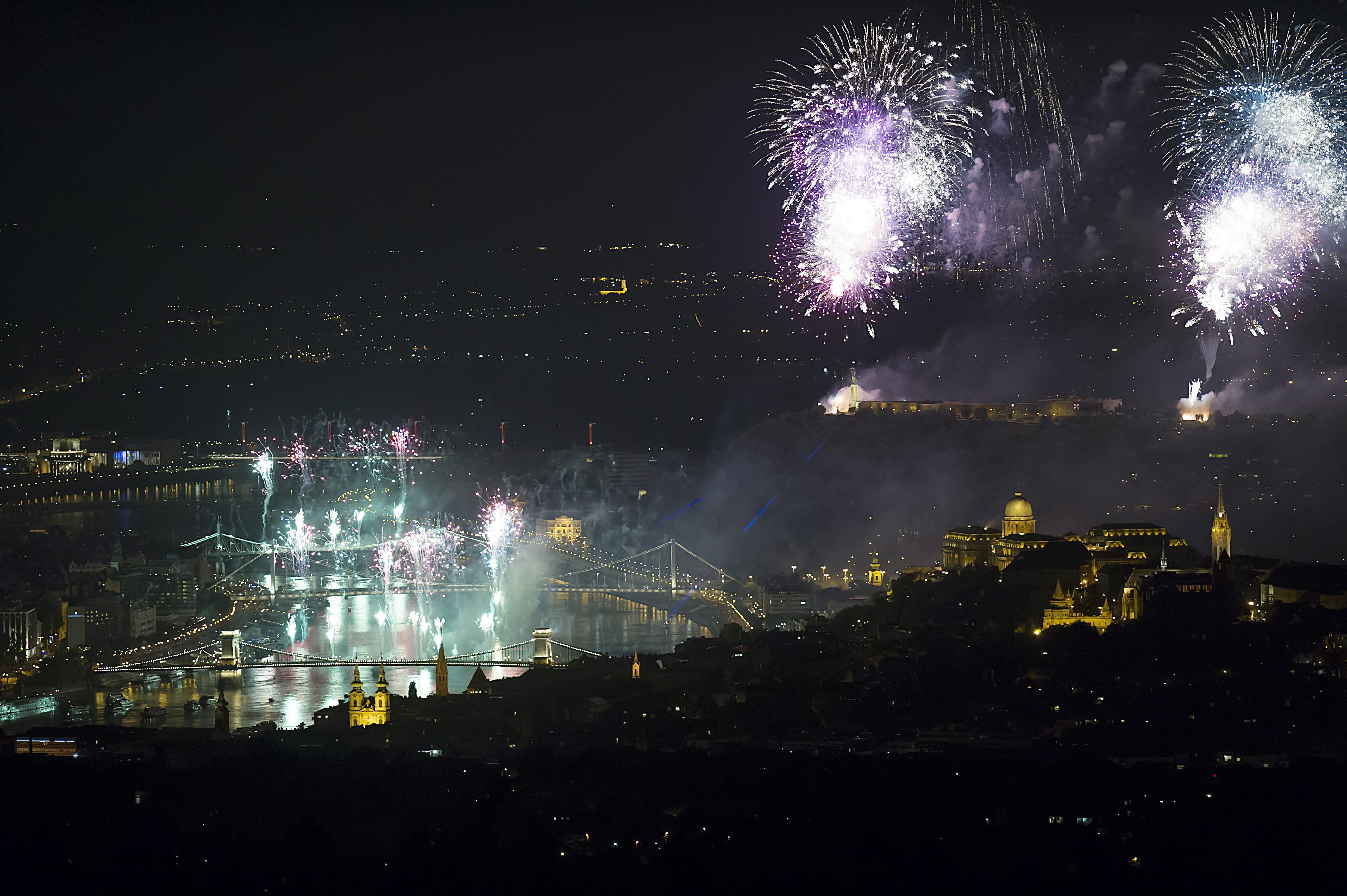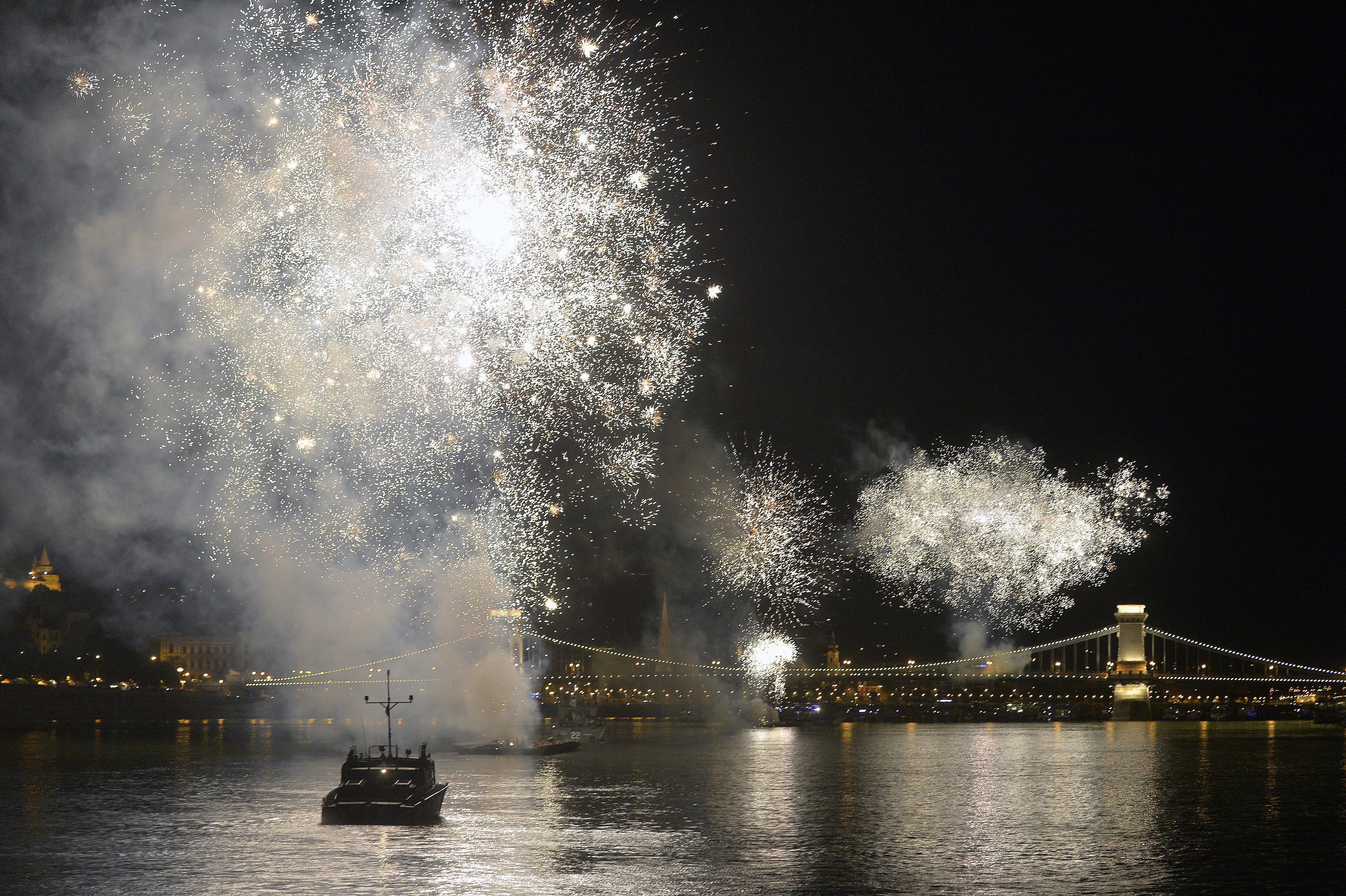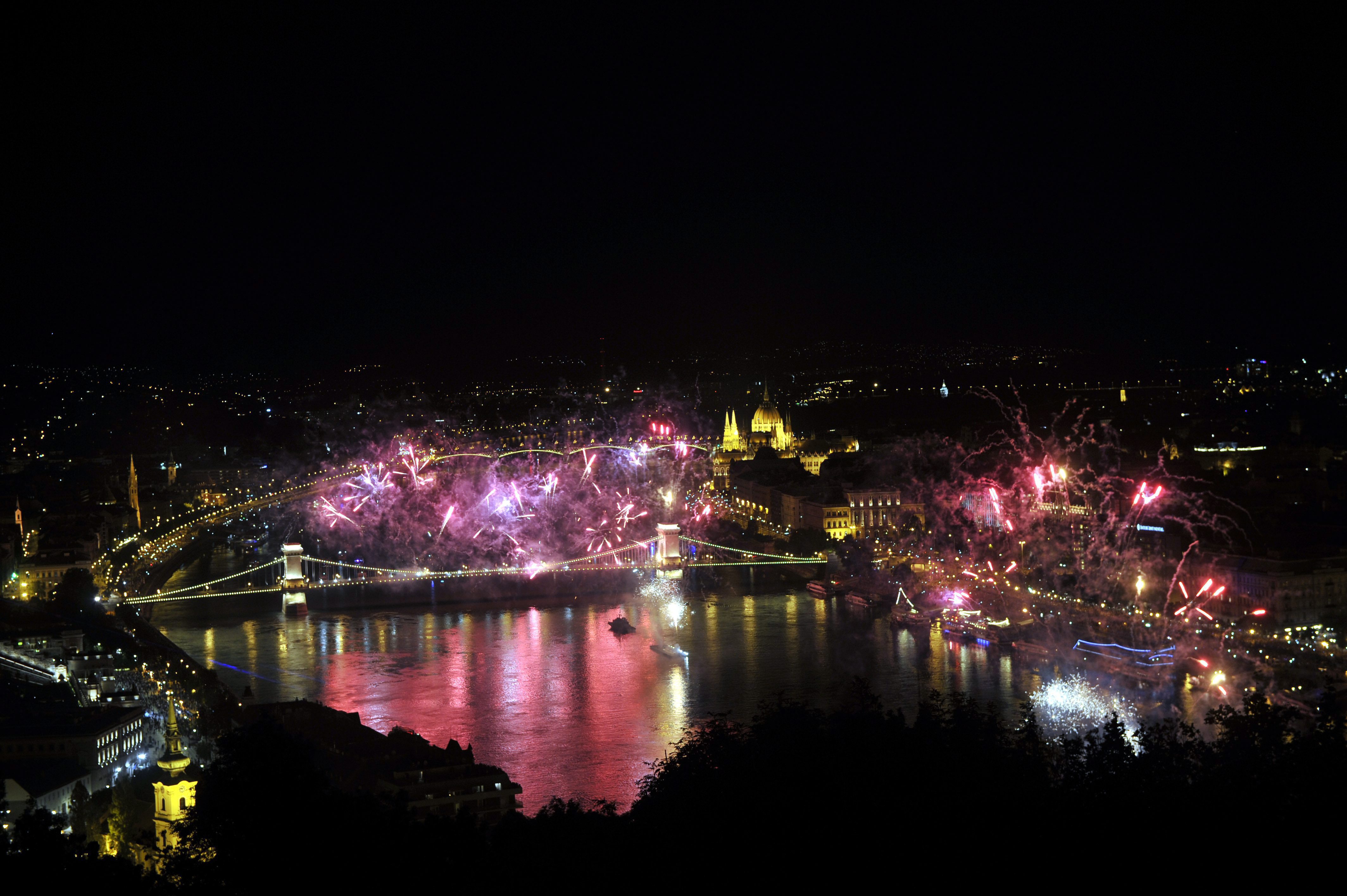 Ünnepi tûzijáték a Duna felett Budapesten 2015. augusztus 20-án.