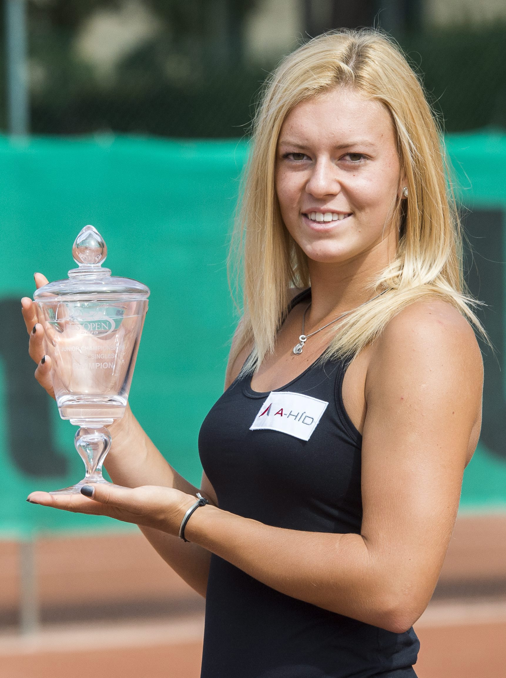 Budapest, 2015. szeptember 16. Az amerikai nyílt teniszbajnokság junior nõi versenyének gyõztese, Gálfi Dalma teniszezõ a XI. kerületi Park Teniszklubban tartott sajtótájékoztatója után 2015. szeptember 16-án. MTI Fotó: Illyés Tibor