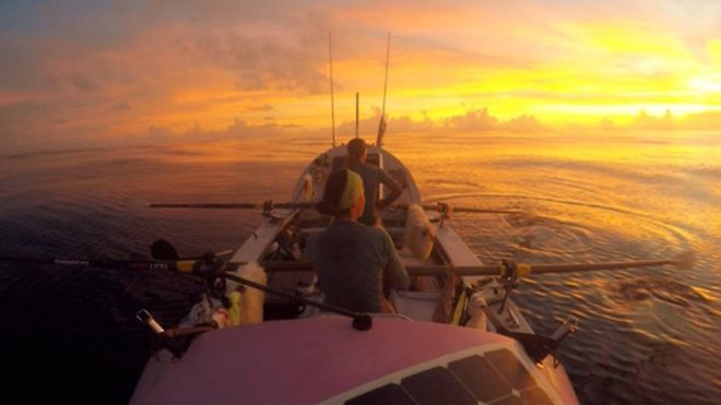A csapat San Franciscóból indult útnak tavaly áprilisban egy kilenc méter hosszú, rózsaszínű, Doris nevű evezős csónakkal. Utoljára Szamoán álltak meg, hogy feltöltsék készleteiket.