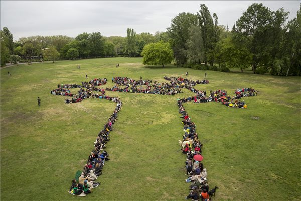 Civilek demonstráltak a Liget Budapest projekt ellen vasárnap a Városligetben, ahol több mint ötszáz résztvevő formázta meg a “Ligetvédők szimbólumát”, a bátorságot jelképező ökölből kinövő fát.