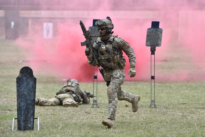 Lövészet a Visegrad 4Sight 2018 V4-es katonai gyakorlaton a szolnoki Ittebei Kiss József helikopterbázison 2018. március 29-én.