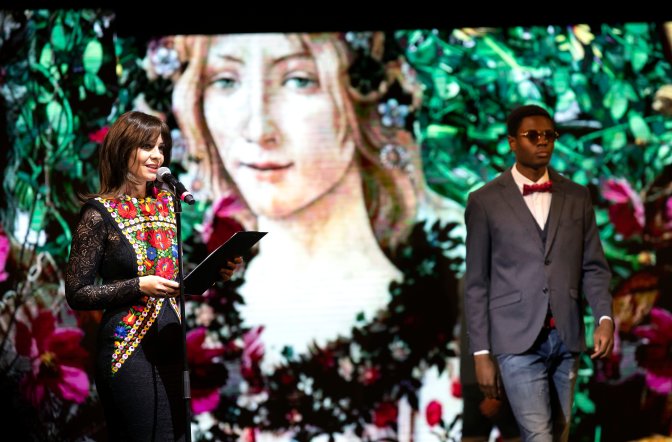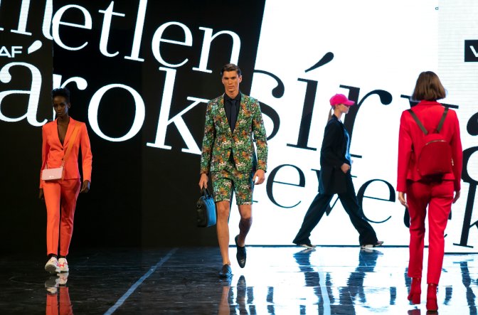 A költészet napjához kacsolódó divatbemutató a budapesti Allee bevásárlóközpontban 2019. április 5-én.