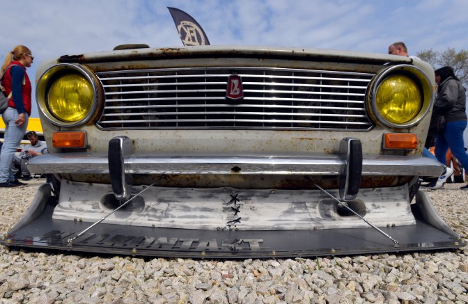 Átalakított Lada a budapesti Vasúttörténeti Parkban rendezett veteránautó-kiállításon 2019. április 7-én.
