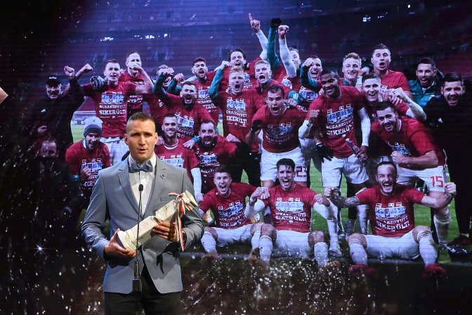 Az év legjobbja hagyományos csapatsportokban a labdarúgó-válogatott lett a győztes, amely ott lesz a részben budapesti rendezésű Európa-bajnokságon, és feljutott a Nemzetek Ligája A-divíziójába. A díjat átvevő Könyves Norbert felidézte: nagyot küzdött a nemzeti együttes, és reméli, hogy a nehéz helyzetben örömet szereztek a magyar drukkereknek, a vírushelyzet elmúltával pedig ismét szurkolók előtt játszhatnak majd.