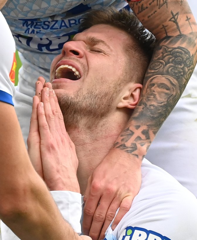A felcsúti Géresi Krisztián örül, miután megszerezte a gyõztes gólt az OTP Bank Liga 18. fordulójában játszott MTK Budapest – Puskás Akadémia FC bajnoki labdarúgó-mérkõzésen az Új Hidegkuti Stadionban 2021. január 30-án. MTK Budapest-Puskás Akadémia 0-1.